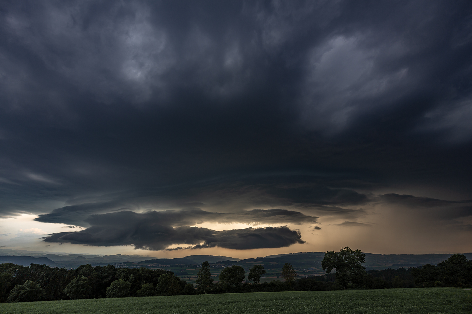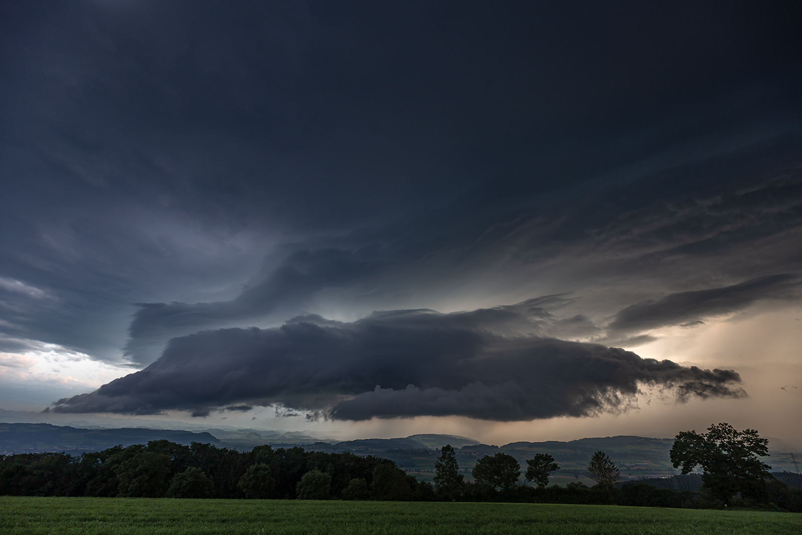 Superzelle mit grossem Hagel zieht knapp nördlich des Standorts Hartlisberg durch.